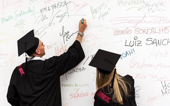 Designed to transform accomplished professionals into industry-shaping creative business leaders, our flexible, hybrid EMBA program currently consists of both online segments and in-person modules hosted in select cities across the globe.